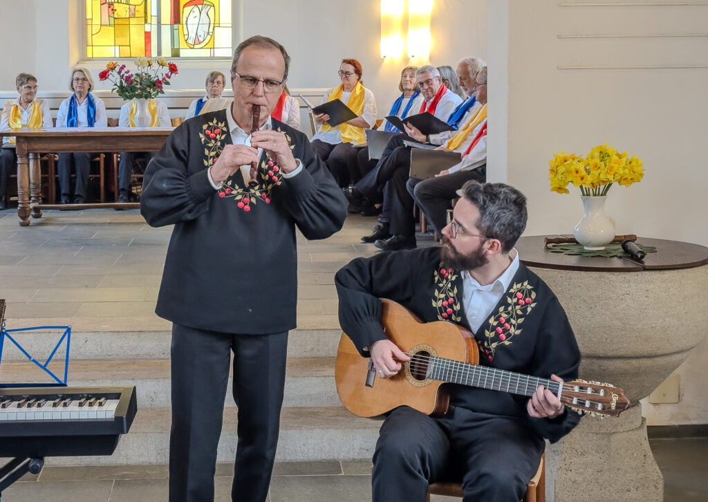 Die gelobten Gastmusiker Matthias Hunziker (Blockflöte) und Remus Regli (Gitarre und Schwyzerörgeli)